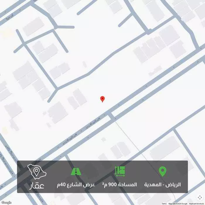 900 م² أرض في المهدية، الرياض معروضة بسعر ٥٬٢٢٠٬٠٠٠ ريال، أعلى بنسبة 187% من متوسط سعر الحي البالغ ١٬٨٢٠٬٠٠٠ ريال. بناءً على 371 عقار مشابه.