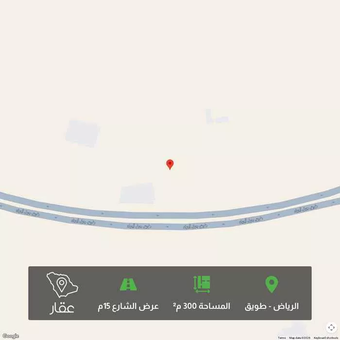 300 م² أرض في طويق، الرياض معروضة بسعر ٦٠٠٬٠٠٠ ريال، أقل بنسبة 69% من متوسط سعر الحي البالغ ١٬٩٢٤٬٠٠٠ ريال. بناءً على 104 عقار مشابه.