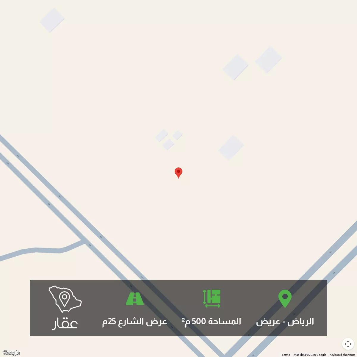عرض على Aqarللبيع ارض في جنوب الرياض حي عريض رقم المخطط أ/2745 ورقم القطعة 12793 مساحتها 500 متر علي شارع عرض 25 متر اطوالها كالتي تفتح جنوب علي شارع بطول 20متر من جهة الشمال ممر علي ساحة بطول 20م من جهة الشرق قط...