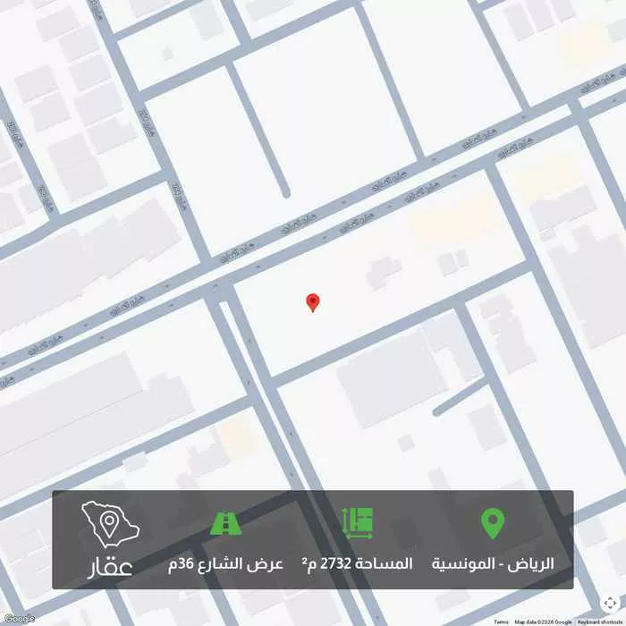 2732 م² أرض في المونسية، الرياض معروضة بسعر ١٦٬٣٩٢٬٠٠٠ ريال، أعلى بنسبة 346% من متوسط سعر الحي البالغ ٣٬٦٧٥٬٠٠٠ ريال. بناءً على 57 عقار مشابه.