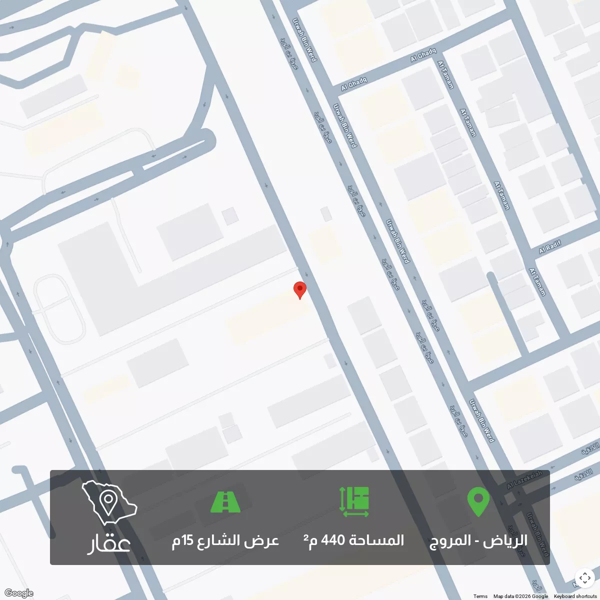 440 م² أرض في المروج، الرياض معروضة بسعر ٣٬٩١٦٬٠٠٠ ريال، أعلى بنسبة 11% من متوسط سعر الحي البالغ ٣٬٥٢٧٬٥٠٠ ريال. بناءً على 13 عقار مشابه.