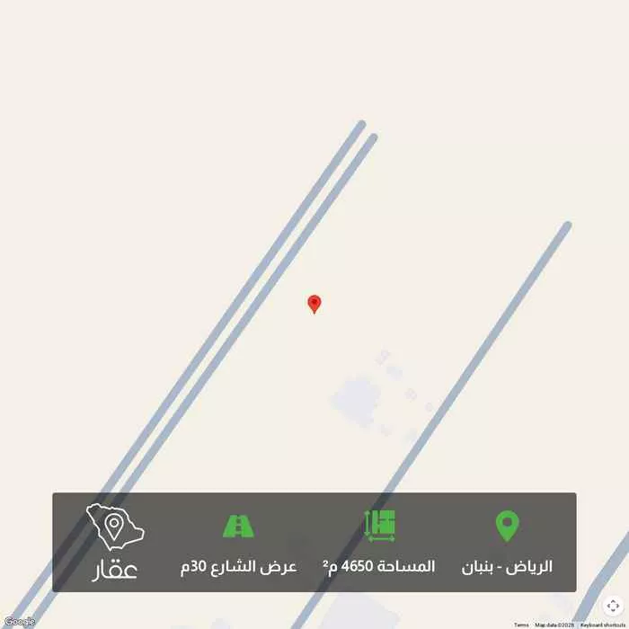 4650 م² أرض في بنبان، الرياض معروضة بسعر ١٦٬٢٧٥٬٠٠٠ ريال، أعلى بنسبة 1923% من متوسط سعر الحي البالغ ٨٠٤٬٥٦٢٫٥ ريال. بناءً على 944 عقار مشابه.