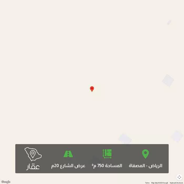 750 م² أرض في المصفاة، الرياض معروضة بسعر ١٬٥٠٠٬٠٠٠ ريال، أعلى بنسبة 76% من متوسط سعر الحي البالغ ٨٥٠٬٠٠٠ ريال. بناءً على 74 عقار مشابه.