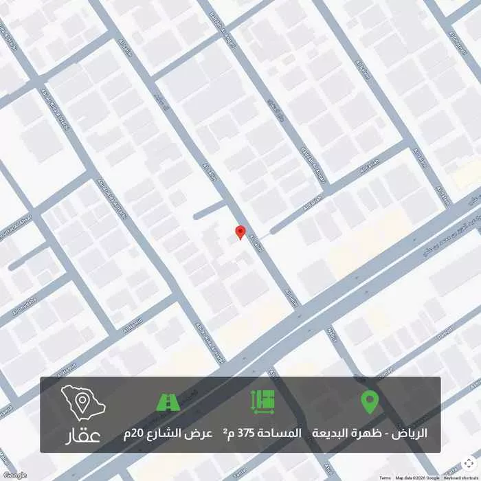 عرض على Aqar� للبيع أرض سكنية – حي ظهرة البديعة | الرياض فرصة مميزة لامتلاك أرض سكنية في موقع حيوي وقريب من جميع الخدمات. تفاصيل الأرض: • المساحة: 375 م² • الأبعاد: 12.5م × 30م • الواجهة: شرقية • عرض الشارع: 20م ...