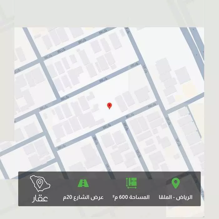 للبيع ارض سكني في حي الملقا زاويه المساحة ٦٠٠م زاوية شارع ٢٠ شرقي شارع٢٠ شمالي الاطوال ٢٠*٣٠ تجزء ثلاث فلل دبلكس