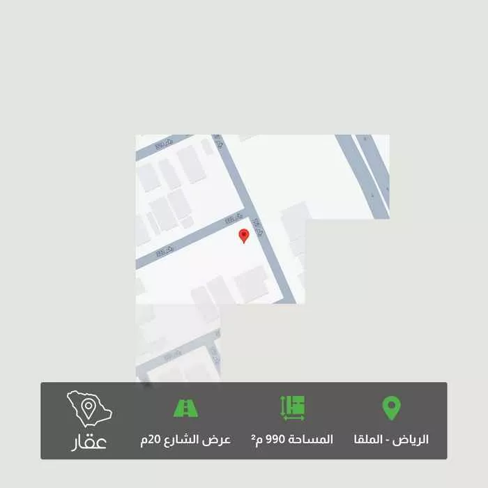 990 م² أرض في الملقا، الرياض معروضة بسعر ٩٬٤٠٥٬٠٠٠ ريال، أعلى بنسبة 40% من متوسط سعر الحي البالغ ٦٬٦٩٩٬٦٨٠ ريال. بناءً على 125 عقار مشابه.