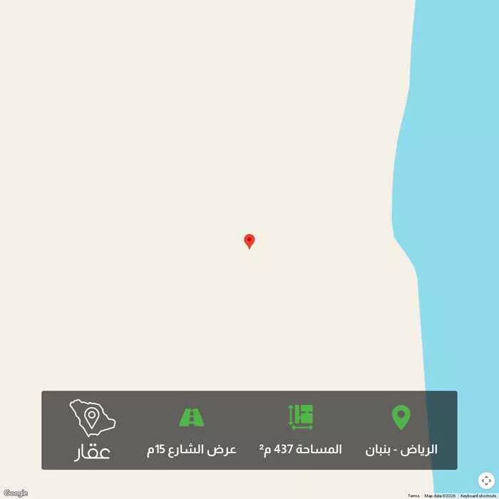 437 م² أرض في بنبان، الرياض معروضة بسعر ١٬١٠٠٬٠٠٠ ريال، أعلى بنسبة 37% من متوسط سعر الحي البالغ ٨٠٠٬٢٥٠ ريال. بناءً على 960 عقار مشابه.