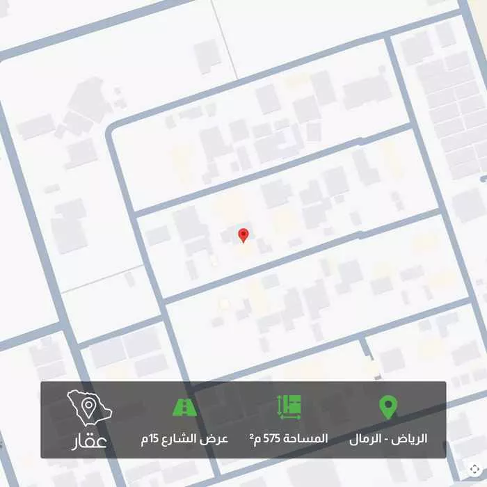575 م² أرض في الرمال، الرياض معروضة بسعر ٢٬٠١٢٬٥٠٠ ريال، أقل بنسبة 18% من متوسط سعر الحي البالغ ٢٬٤٥٣٬٠٠٠ ريال. بناءً على 284 عقار مشابه.