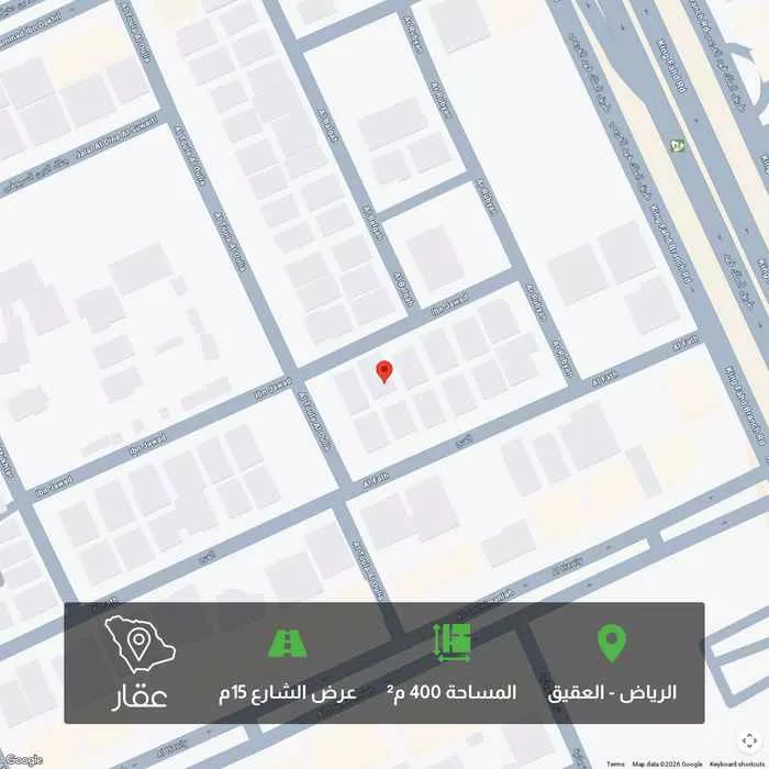 400 م² أرض في العقيق، الرياض معروضة بسعر ٣٬٢٤٠٬٠٠٠ ريال، أقل بنسبة 32% من متوسط سعر الحي البالغ ٤٬٧٥٠٬٠٠٠ ريال. بناءً على 43 عقار مشابه.