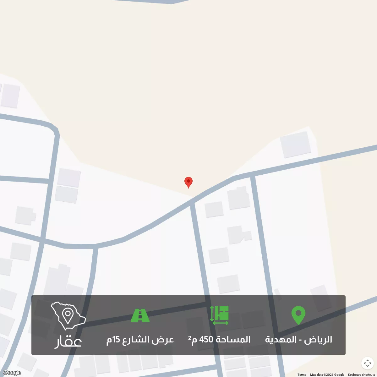 450 م² أرض في المهدية، الرياض معروضة بسعر ١٬٢٦٠٬٠٠٠ ريال، أقل بنسبة 21% من متوسط سعر الحي البالغ ١٬٥٨٩٬٨٨٠ ريال. بناءً على 40 عقار مشابه.