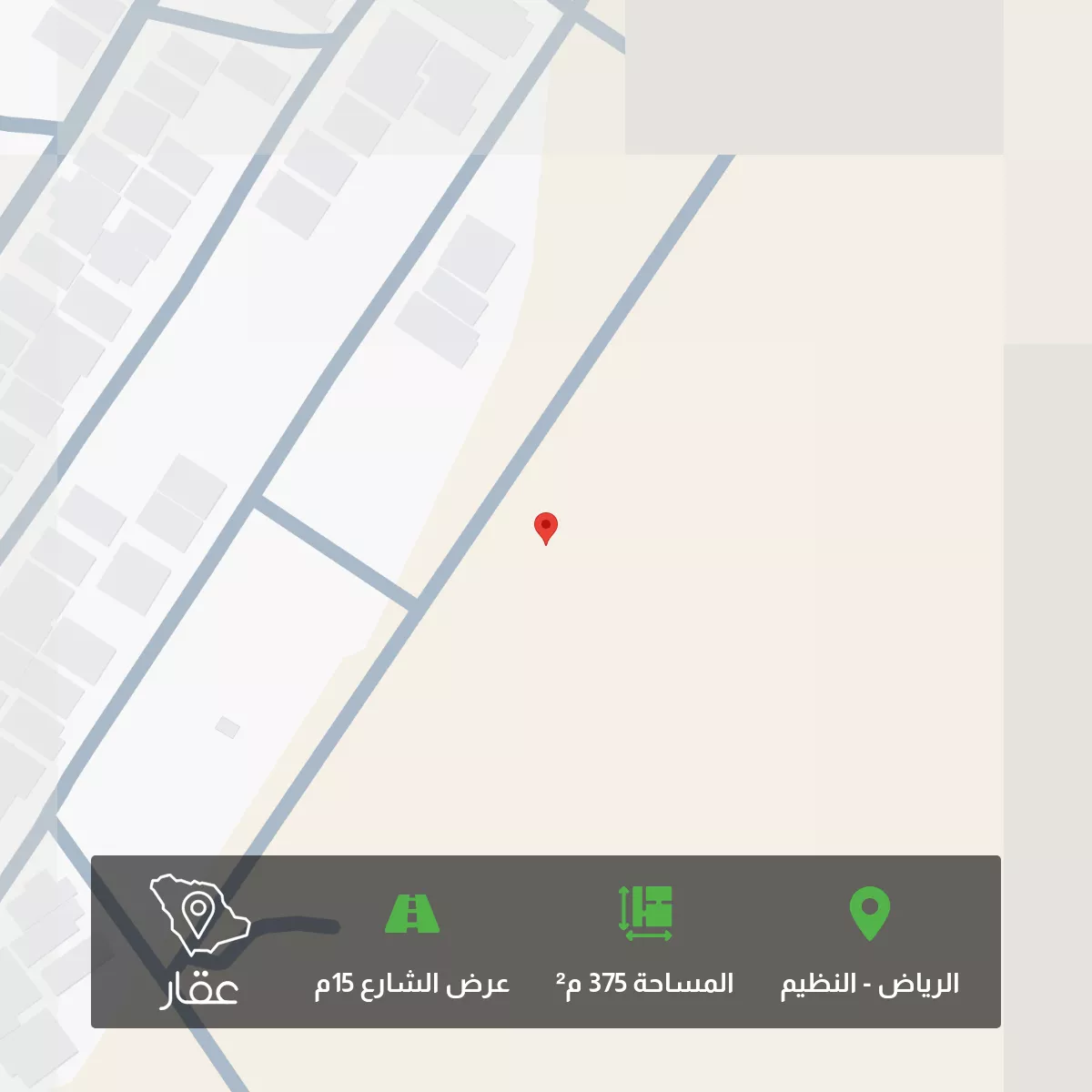 375 م² أرض في النظيم، الرياض معروضة بسعر ٦٧٥٬٠٠٠ ريال، أقل بنسبة 10% من متوسط سعر الحي البالغ ٧٥٠٬٠٠٠ ريال. بناءً على 232 عقار مشابه.