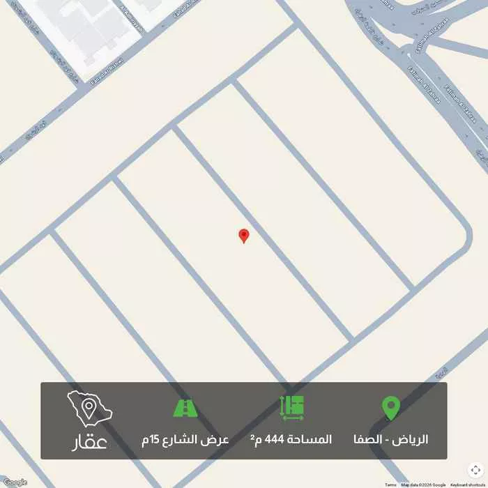 444 م² أرض في الصفا، الرياض معروضة بسعر ١٬٦٩٠٬٦٣٠ ريال، أقل بنسبة 10% من متوسط سعر الحي البالغ ١٬٨٧٥٬٠٠٠ ريال. بناءً على 37 عقار مشابه.