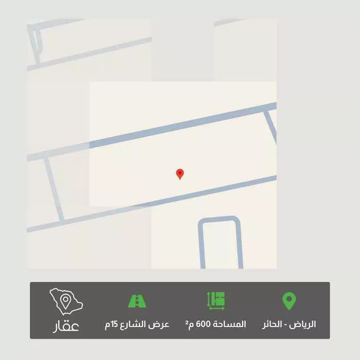 600 م² أرض في الحائر، الرياض معروضة بسعر ٣٩٠٬٠٠٠ ريال، بنفس متوسط سعر الحي البالغ ٣٩٠٬٠٠٠ ريال. بناءً على 37 عقار مشابه.