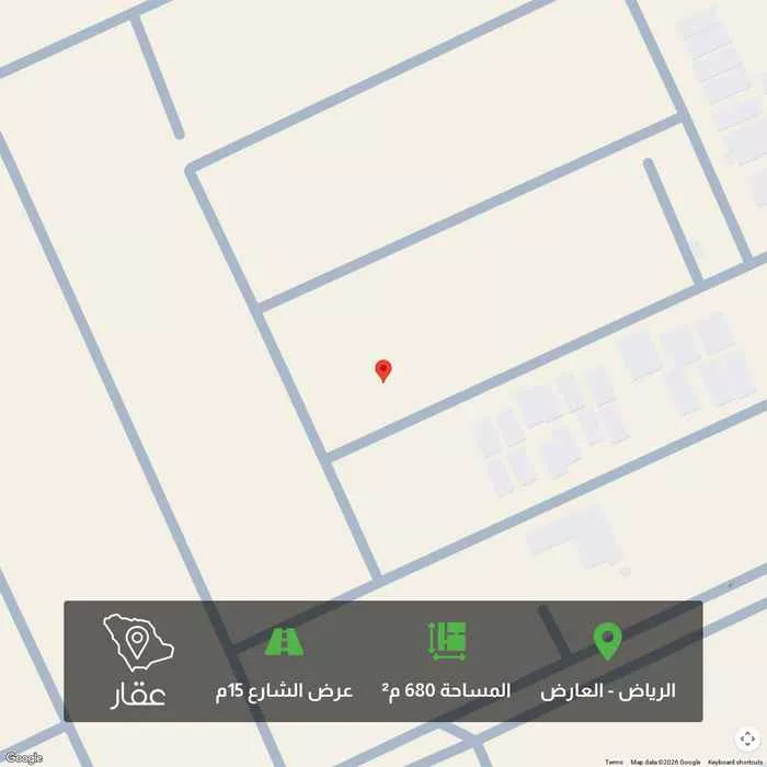 للبيع أرض سكنية الموقع : الرياض حي العارض قرب جامع المهيني المساحة : 680م الأطوال : 20على الشارع * 34 عمق واجهة : جنوبية الشارع : 15 م المخطط : 3158 بلك : 48 القطعة : 587 على السوم مزيد من التفاصيل وا...
