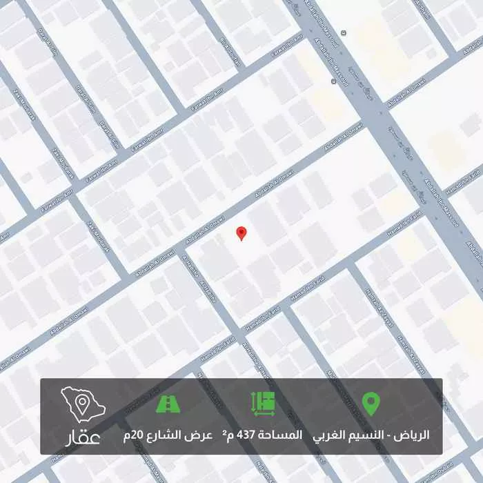 437 م² أرض في النسيم الغربي، الرياض معروضة بسعر ١٬٣٥٤٬٧٠٠ ريال، أقل بنسبة 12% من متوسط سعر الحي البالغ ١٬٥٣١٬٢٥٠ ريال. بناءً على 44 عقار مشابه.
