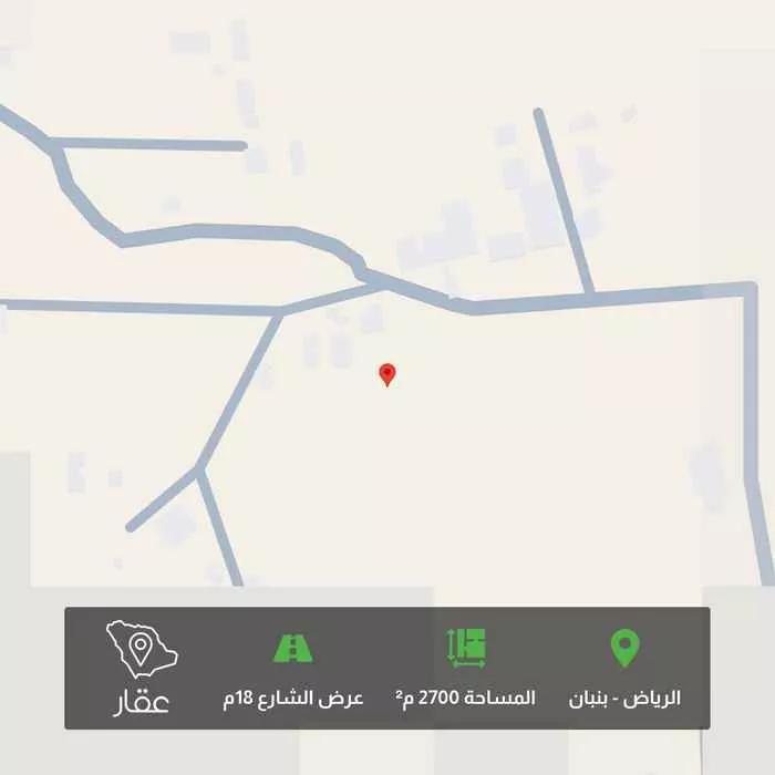 2700 م² أرض في بنبان، الرياض معروضة بسعر ٦٬٧٥٠٬٠٠٠ ريال، أعلى بنسبة 743% من متوسط سعر الحي البالغ ٨٠٠٬٢٦٥ ريال. بناءً على 962 عقار مشابه.