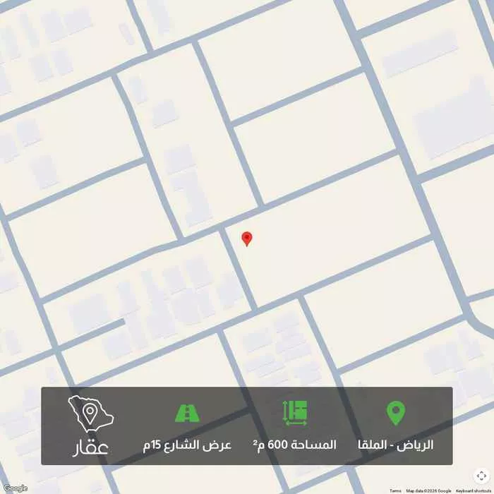 عرض على Aqarللبيع ارض في موقع مميز في حي ملقا العساكر المساحة 600 متر 20 على الشارع والعمق 30 الارض زاوية شارعين 15 شمالي + 10 غربي الحد 11500 للمتر الافراغ فوري بالحد المذكور اللوكيشن صحيح