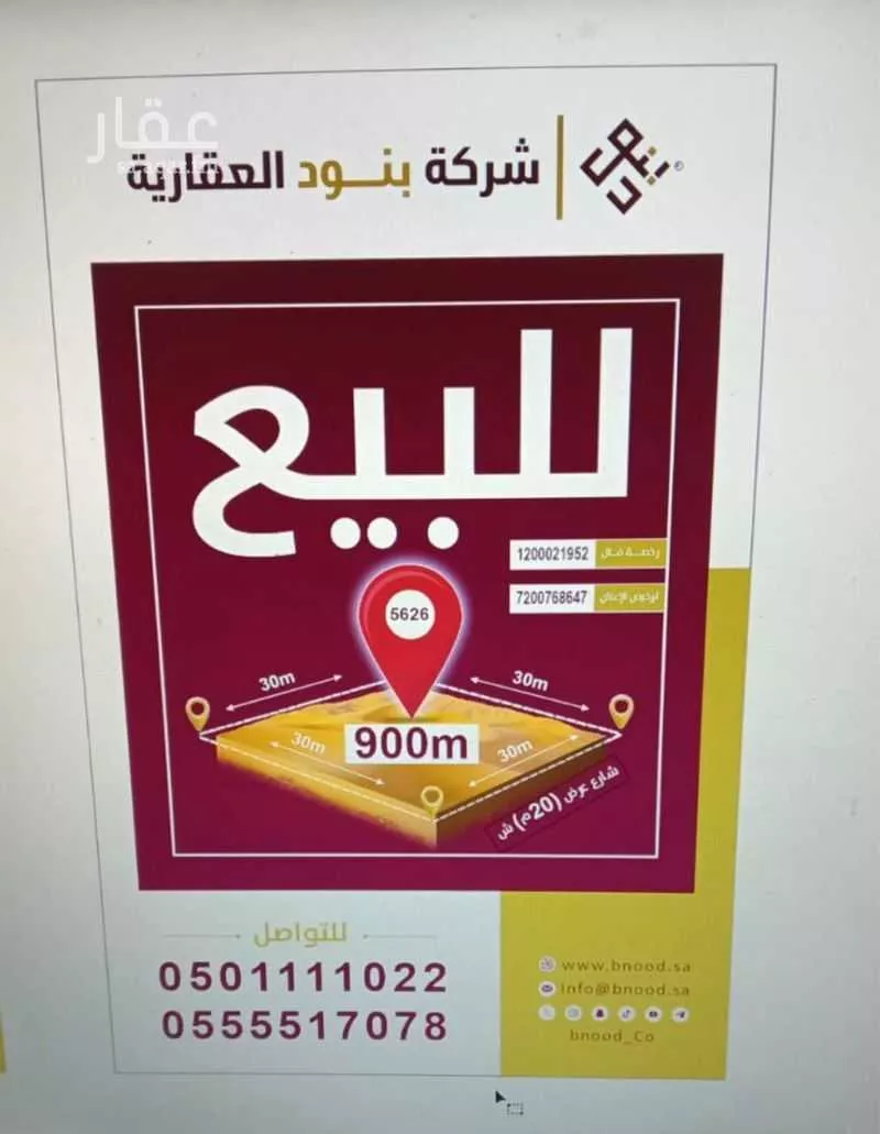 عرض على Aqarللبيع قطعة سكنية 900م بحي طويق شارع 20 شمالي خلف هرفي نجم الدين عليها رخصة بناء 6 وحدات تاون هاوس للتواصل والاستفسار 0538888460 - 0555517078
