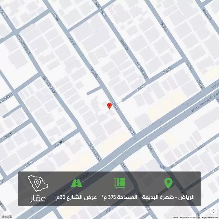 375 م² أرض في ظهرة البديعة، الرياض معروضة بسعر ٩٠٠٬٠٠٠ ريال، أقل بنسبة 8% من متوسط سعر الحي البالغ ٩٧٥٬٠٠٠ ريال. بناءً على 15 عقار مشابه.