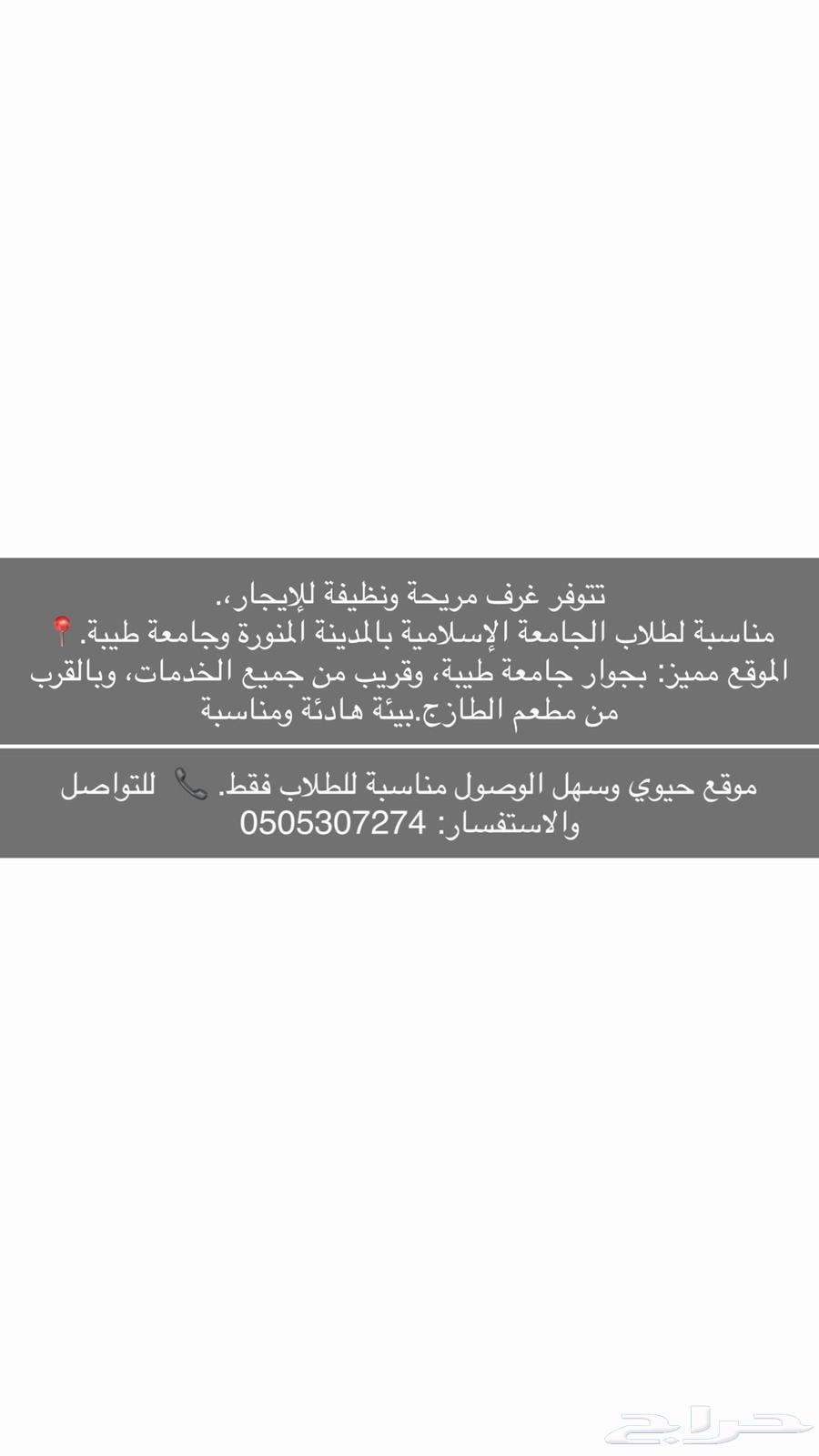 Comfortable and clean rooms are available for rent, suitable for students of the Islamic University of Madinah and Taibah University. Prime location: next to Taibah University, close to all services, ...