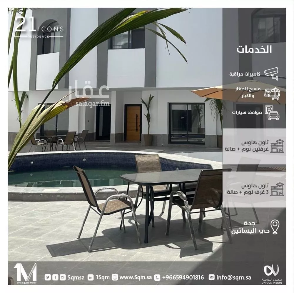 مشروع 21 ايكونز عبارة عن مجمع سكني مغلق في حي البساتين الشمالي والذي يتميز بقربه من طريق الملك و الواجهة البحرية و من الخدمات التي تحتاجها العائلة. المجمع السكني يوفر وحدات متعددة تناسب جميع الفئات وه...