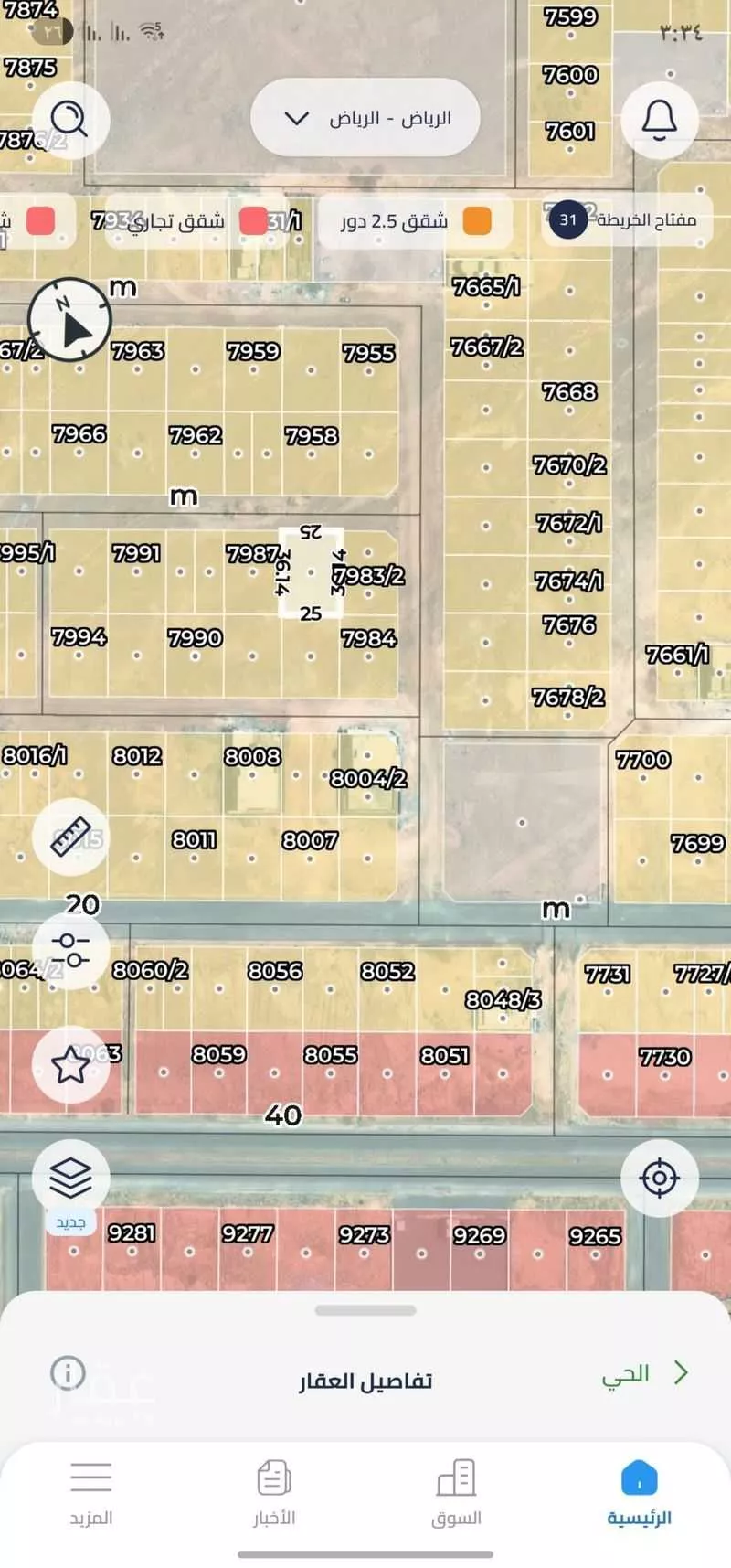 900 م² أرض في ضاحية نمار، الرياض معروضة بسعر ٢٬٠٠٠٬٠٠٠ ريال، أعلى بنسبة 167% من متوسط سعر الحي البالغ ٧٥٠٬٠٠٠ ريال. بناءً على 439 عقار مشابه.