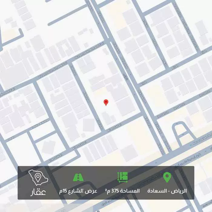 عرض على Aqarللبيع أرض حي السعادة – الرياض الموقع: حي السعادة – (موقع استراتيجي قريب من الطرق الرئيسية). المساحة: قطعتين مساحة كل قطعة375 متر مربع (صك إلكتروني – قطعة مستوية وجاهزة للتطوير). مميزات الأرض: • داخل م...