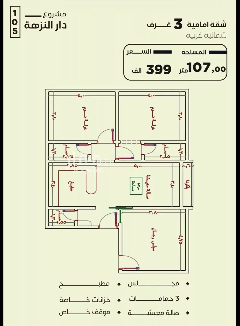شقق تمليك خلف العرب مول حي النزهه المربع الذهبي بالقرب من طريق المدينه - 3 غرف مدخلين وصاله ومطبخ و3 دورات مياه خزانات مستقلة علويه وسفليه موقف خاص عداد كهرباء خاص المساحه 107م السعر 399 الف - الضمانا...