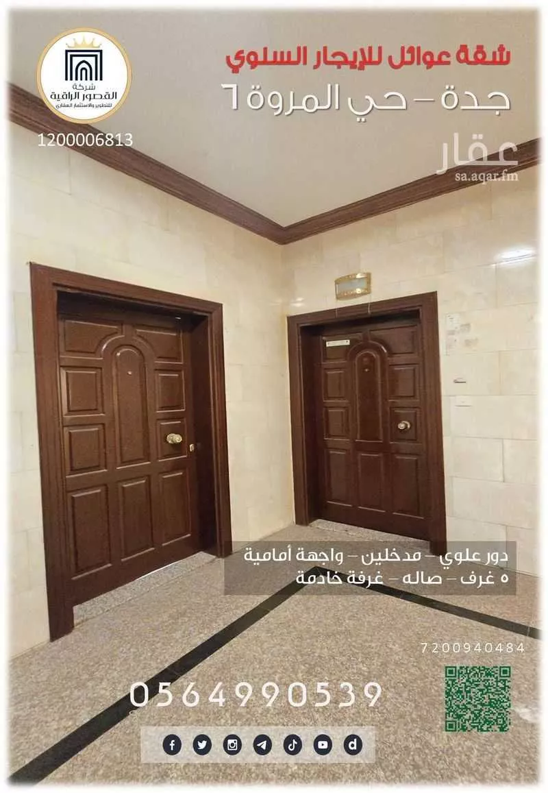 شقة عوائل كبيرة -دور علوي مدخلين - واجهة امامية مطله على موقع حديقة ومسجد مكونة من : مجلس - سفرة - دورة مياه صاله - غرفة عاملة منزلين - 3 غرف نوم منها واحدة ماستر مطبخ كبير مفنوح على الصاله التاجير لل...