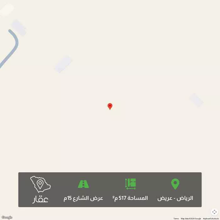 517 م² أرض في عريض، الرياض معروضة بسعر ٤٥١٬٢٦٠ ريال، أعلى بنسبة 13% من متوسط سعر الحي البالغ ٣٩٩٬٦٠٠ ريال. بناءً على 667 عقار مشابه.