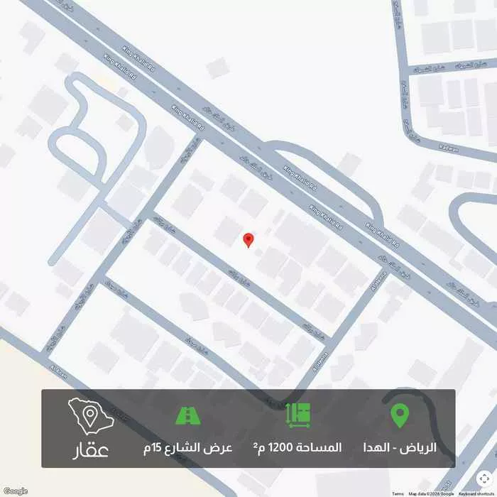 1200 م² أرض في الهدا، الرياض معروضة بسعر ٥٬٤٠٠٬٠٠٠ ريال، بنفس متوسط سعر الحي البالغ ٥٬٤٠٠٬٠٠٠ ريال. بناءً على 17 عقار مشابه.