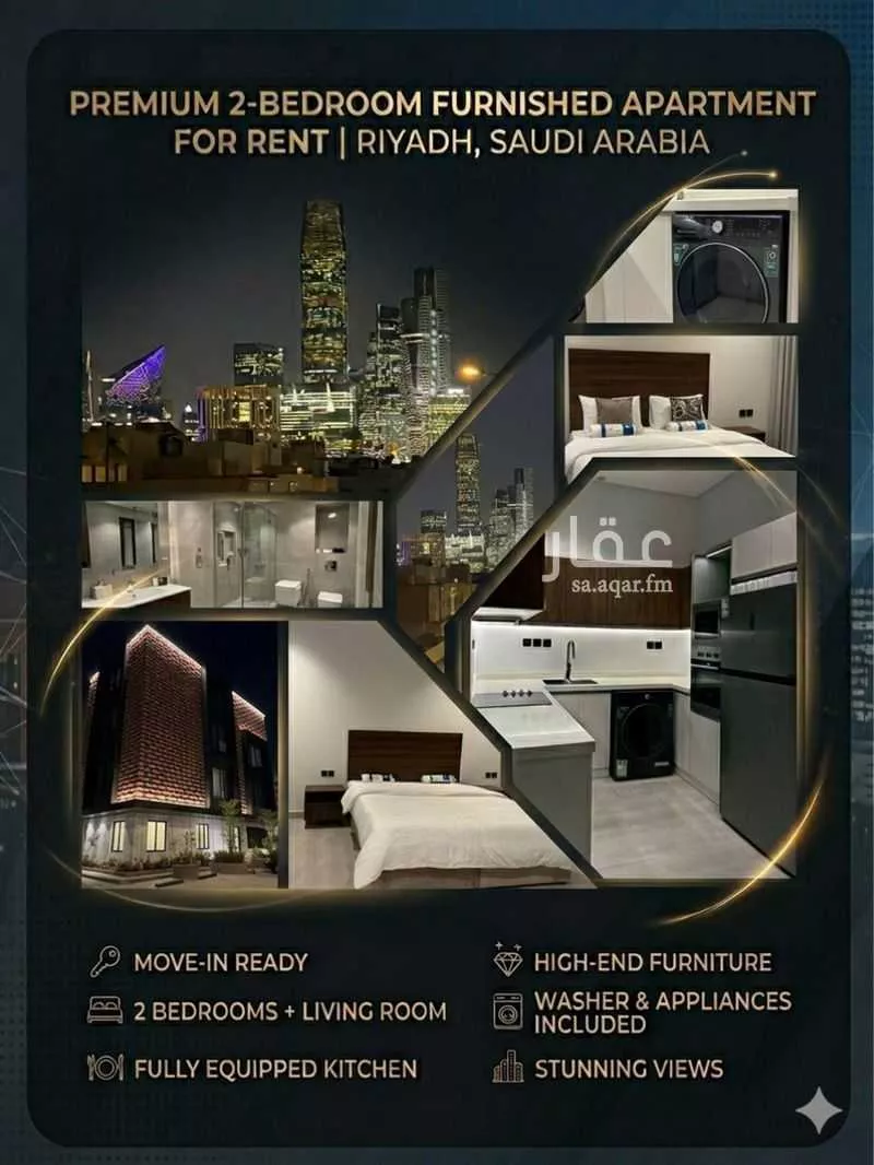 شقة مفروشة موقع مميز في حي العقيق خلف المركز المالي مؤثثة بالكامل غرفتين نوم مطبخ مجهز مع صالة مريحة Furnished apartment in a prime location in Al Aqiq, behind the Financial District Fully furnished 2...