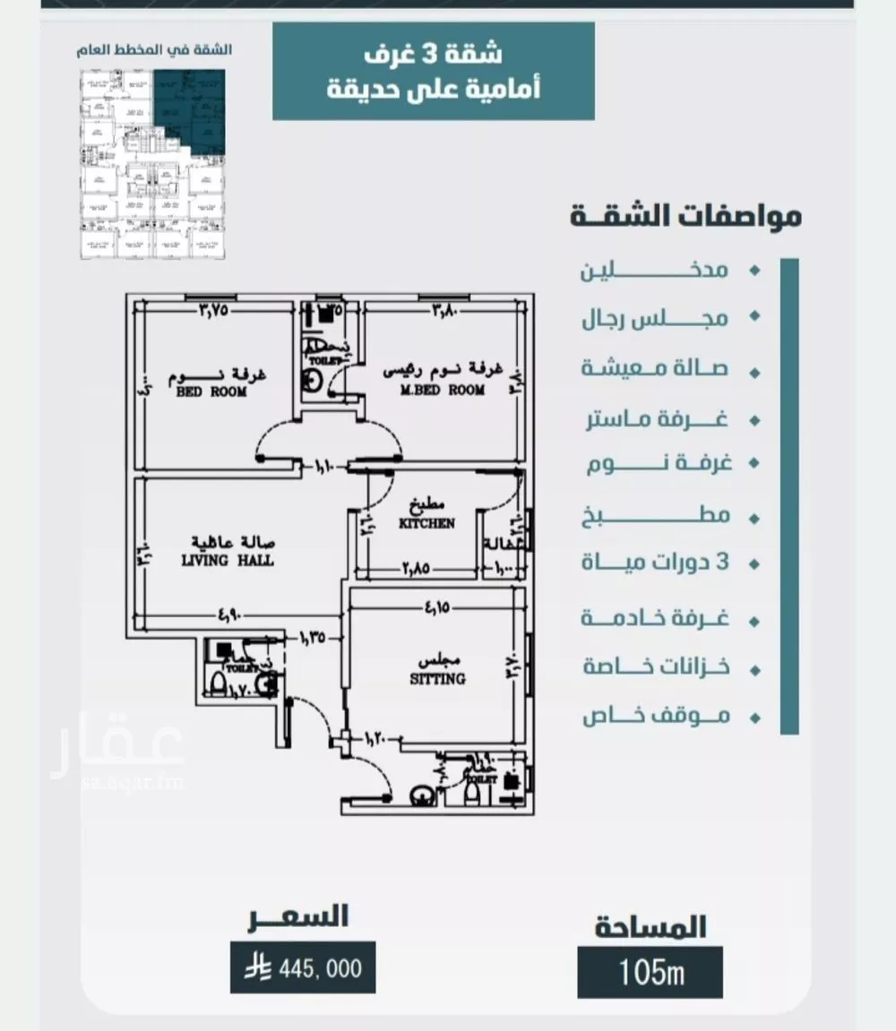 (مشروع فيوتشر 5 ) بحي الورود* ◀ *شقق تحت الانشاء*▶ الدفع كاش *تفاصيل المشروع* *شقة امامية مطلة على حديقة* *3 غرف* المساحة : 105 م السعر : 445 الف ريال *الضمانات* * 25 سنة قواطع و افياش * 20 سنة هيكل ...