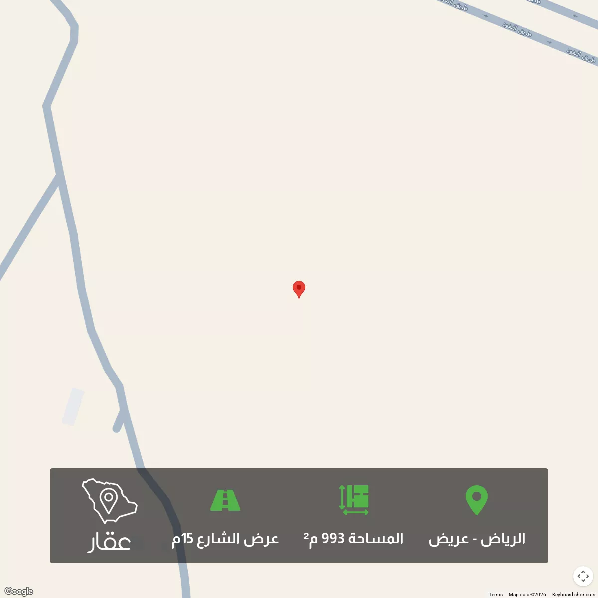 993 م² أرض في عريض، الرياض معروضة بسعر ٤٩٩٬٨٦٦ ريال، أعلى بنسبة 25% من متوسط سعر الحي البالغ ٣٩٩٬٦٠٠ ريال. بناءً على 675 عقار مشابه.