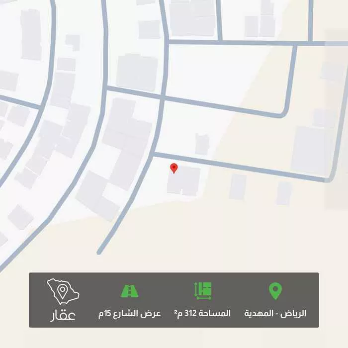 312 م² أرض في المهدية، الرياض معروضة بسعر ١٬٢٠٣٬١٢٥ ريال، أقل بنسبة 34% من متوسط سعر الحي البالغ ١٬٨٢٠٬٠٠٠ ريال. بناءً على 371 عقار مشابه.