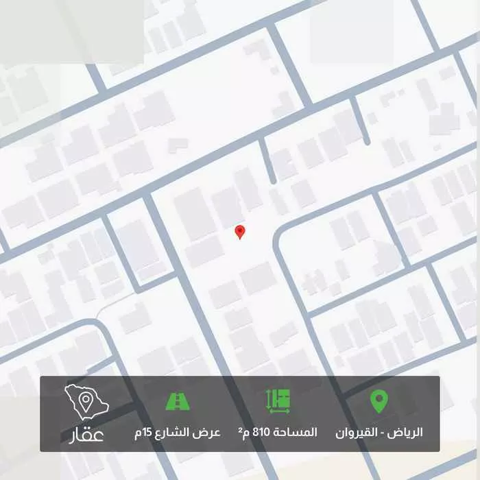 ارض للبيع الحي / القيروان المساحة / 810 الشارع / 15 الواجهة / شرقية قابل للتفاوض