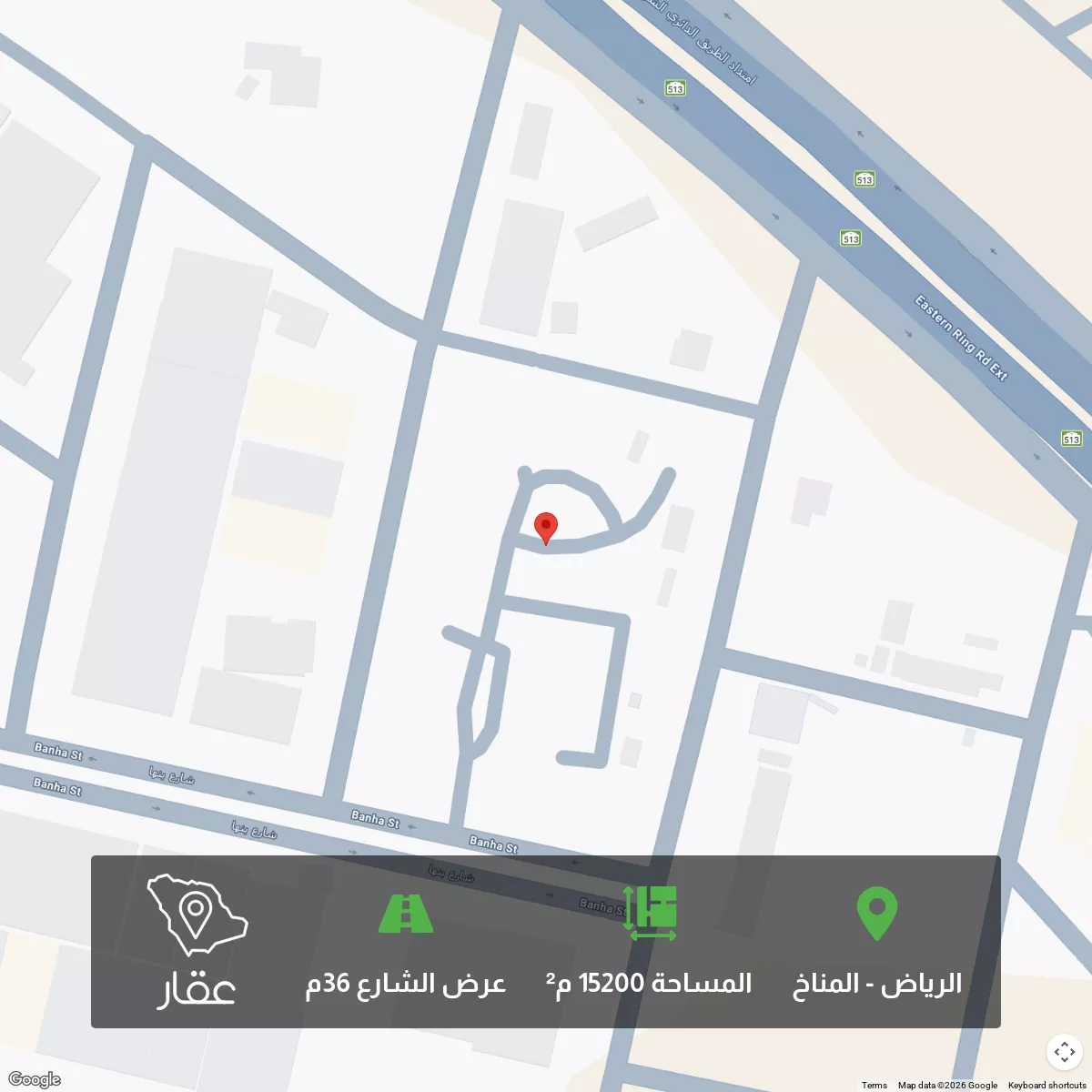 15200 م² أرض في المناخ، الرياض معروضة بسعر ٣٩٬٥٢٠٬٠٠٠ ريال، أعلى بنسبة 1071% من متوسط سعر الحي البالغ ٣٬٣٧٥٬٠٠٠ ريال. بناءً على 10 عقار مشابه.