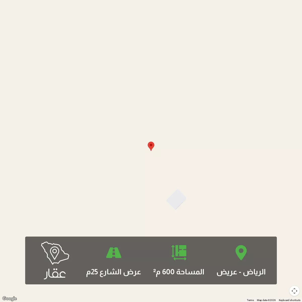 600 م² أرض في عريض، الرياض معروضة بسعر ٦٥٠٬٠٠٠ ريال، أعلى بنسبة 63% من متوسط سعر الحي البالغ ٣٩٩٬٦٠٠ ريال. بناءً على 680 عقار مشابه.