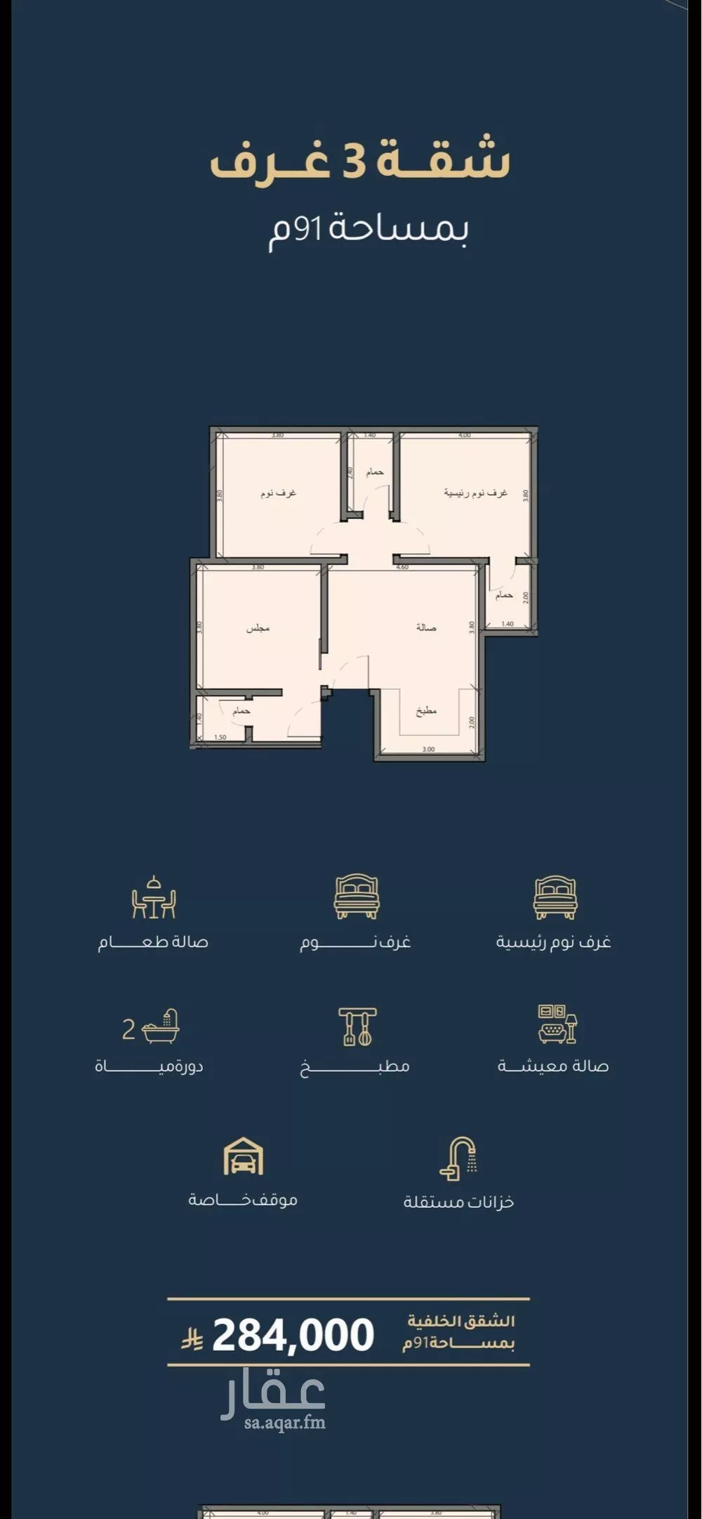 3 غرف شقة في الريان، جدة معروضة بسعر ٢٩٩٬٠٠٠ ريال، أقل بنسبة 5% من متوسط سعر الحي البالغ ٣١٥٬٠٠٠ ريال. بناءً على 384 عقار مشابه.