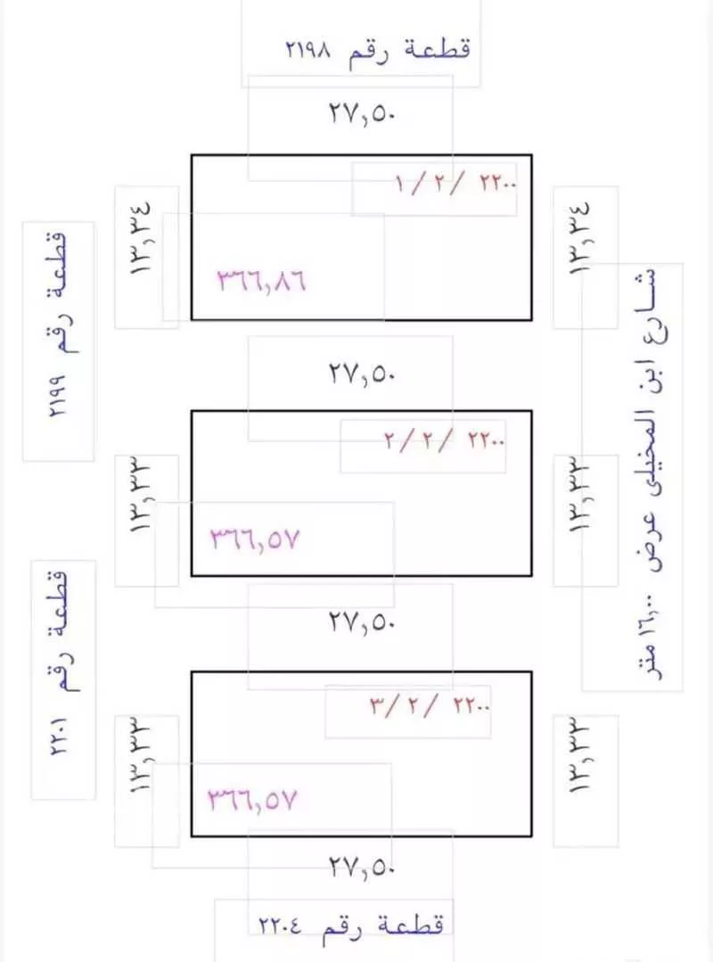 السلام عليكم ورحمة الله . للبيع قطعة سكنية في مخطط العاقول د/3 . رقم القطعة 2/2/2200 . موقع ممتاز و مناسبة جداً لمشروع وحدات سكنية . مساحة القطعة 366 بطول على الشارع 13،33 متر . سعر القطعة 360 شامل ال...