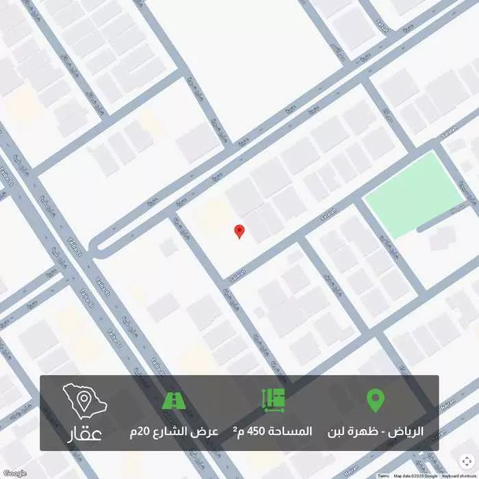 450 م² أرض في ظهرة لبن، الرياض معروضة بسعر ٢٬٠٢٥٬٠٠٠ ريال، أقل بنسبة 18% من متوسط سعر الحي البالغ ٢٬٤٧٥٬٠٠٠ ريال. بناءً على 253 عقار مشابه.