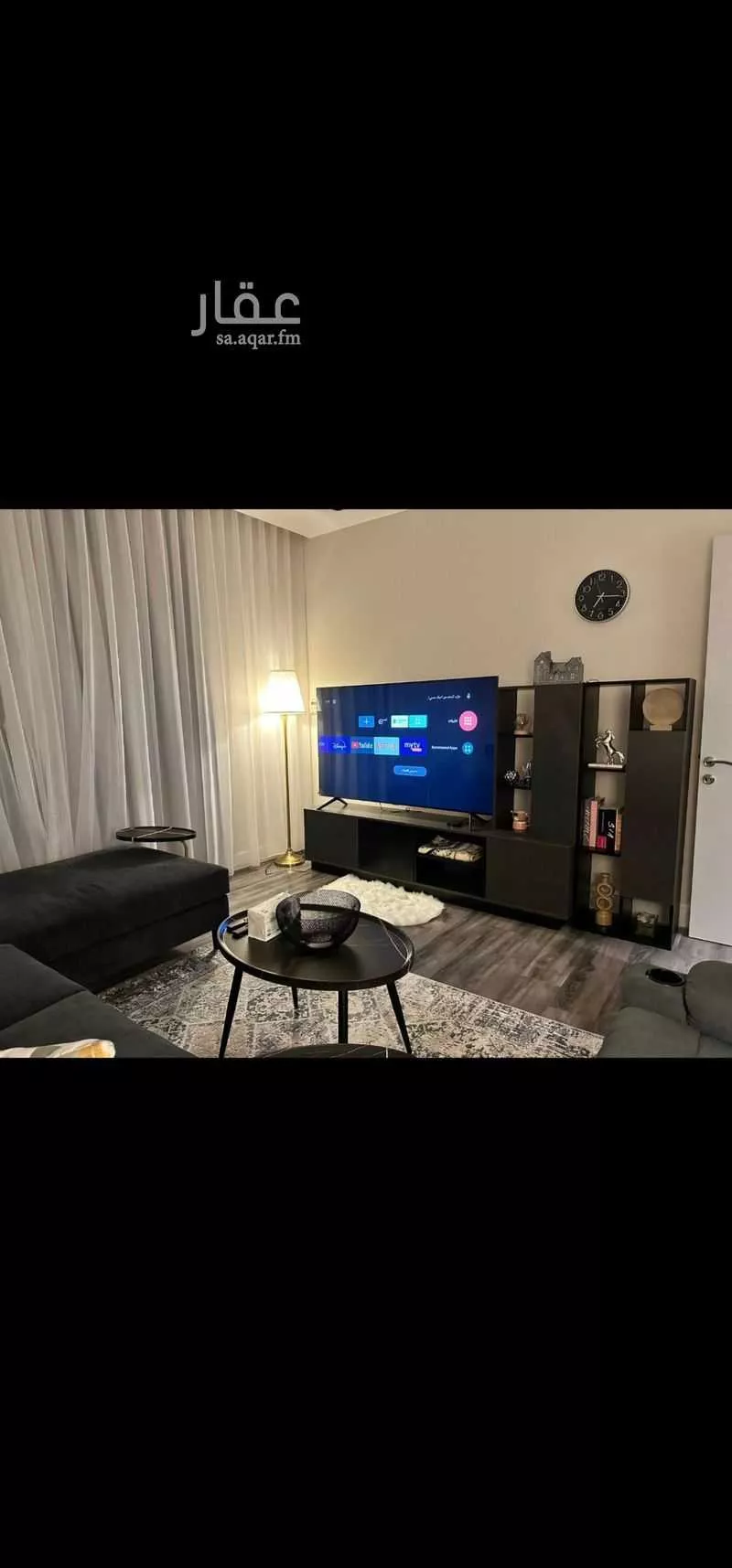 السلام عليكم للأيجار الشهري فقط شقة فخمة مكونة من صالة جلوس كبيره فيها تلفزيون ٧٠ انش سوني وكوفي بار ويوجد ثلاجه صغيره ومايكرويف وغرفة نوم وحمام بدون مطبخ ،مكيفات مركزيه لكامل الشقه في كمباوند خاص وال...