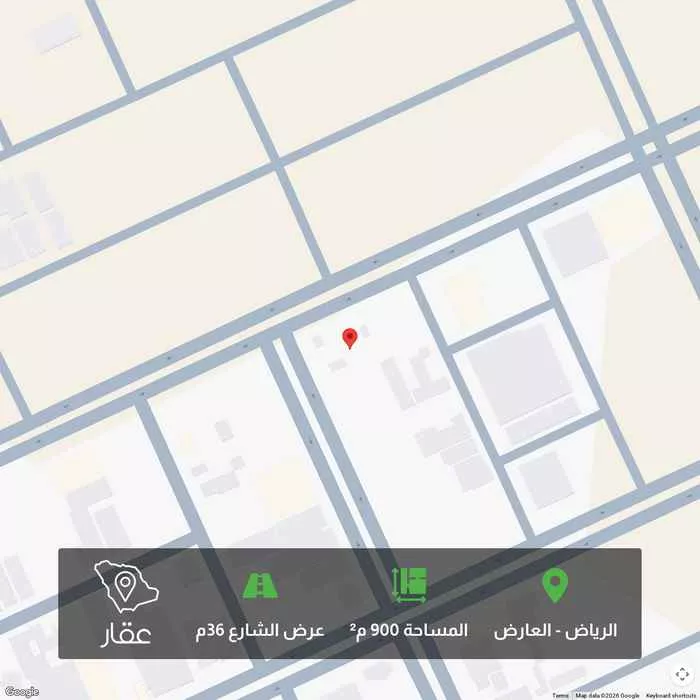 ارض تجاري سكني زاويه المساحه | ٩٠٠ م الاطوال | ٣٠.٣٠ الشوارع ٣٦ شمالي ٣٦ غربي