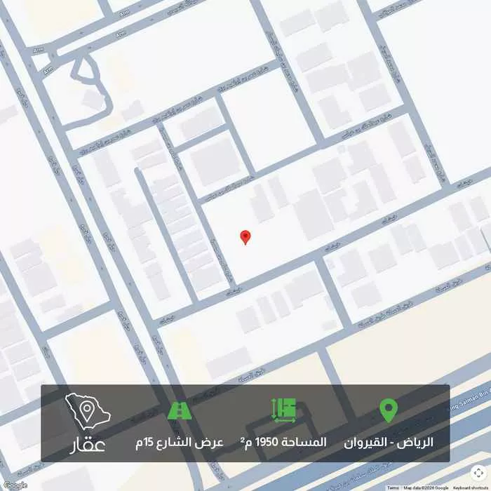 1950 م² أرض في القيروان، الرياض معروضة بسعر ١٧٬٣٥٥٬٠٠٠ ريال، أعلى بنسبة 414% من متوسط سعر الحي البالغ ٣٬٣٧٥٬٠٠٠ ريال. بناءً على 212 عقار مشابه.