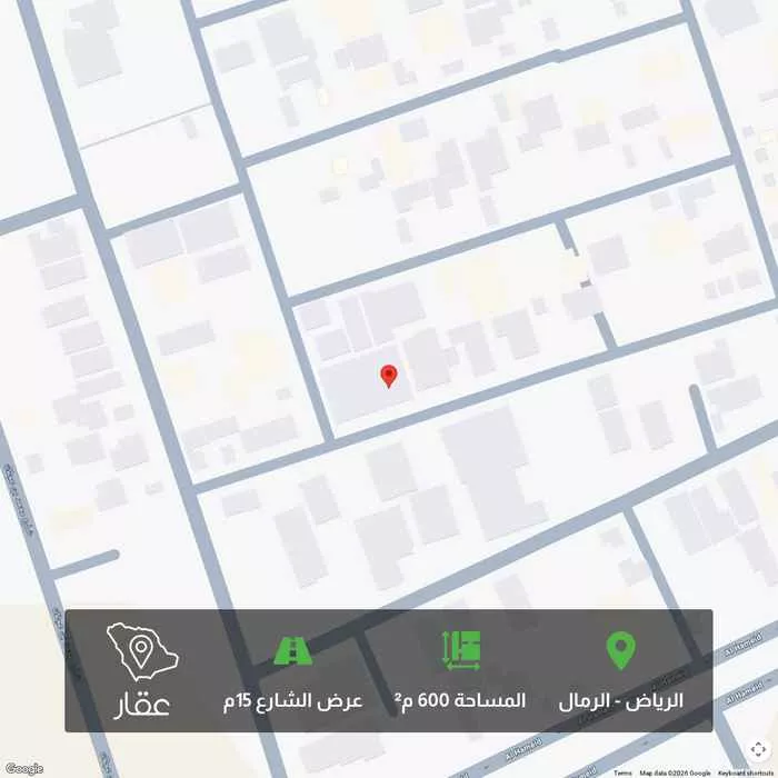 عرض على Aqarللبيع قطعه ارض سكنيه في حي الرمال مخطط تنال تصلح دبلكسات المساحه ٦٠٠ الاطوال ٢٠ &٣٠ الواجهه شماليه عرض الشارع ١٥ البيع ٤٠٠٠ مباشر من الوكيل