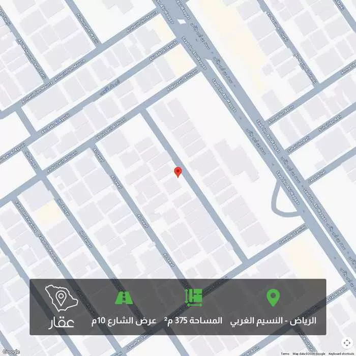 375 م² أرض في النسيم الغربي، الرياض معروضة بسعر ٧٥٠٬٠٠٠ ريال، أقل بنسبة 51% من متوسط سعر الحي البالغ ١٬٥٣١٬٢٥٠ ريال. بناءً على 40 عقار مشابه.