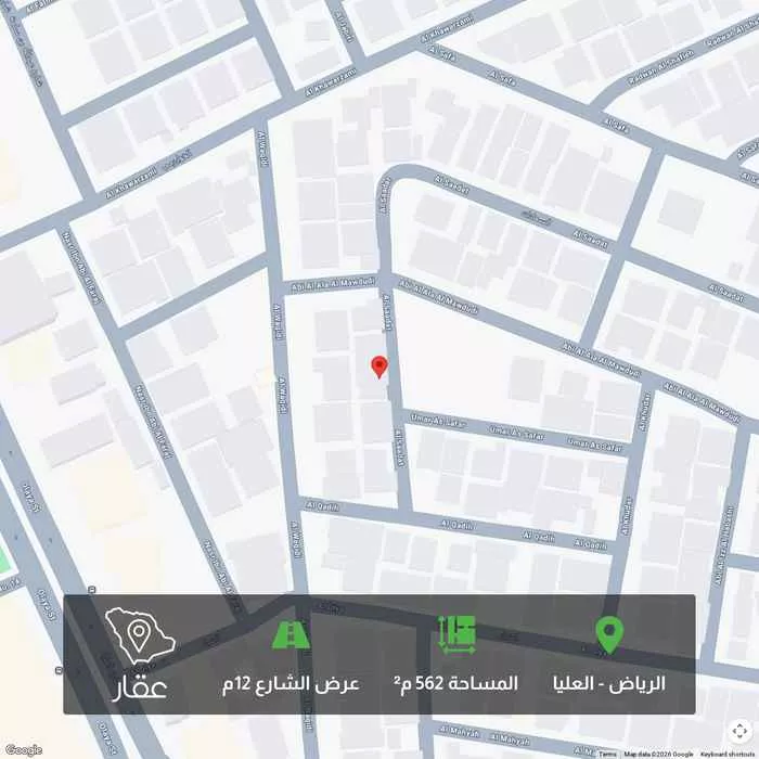 562 م² أرض في العليا، الرياض معروضة بسعر ٣٬٤٥٩٬٣٧٥ ريال، أقل بنسبة 1% من متوسط سعر الحي البالغ ٣٬٤٧٩٬٦٨٧٫٥ ريال. بناءً على 42 عقار مشابه.