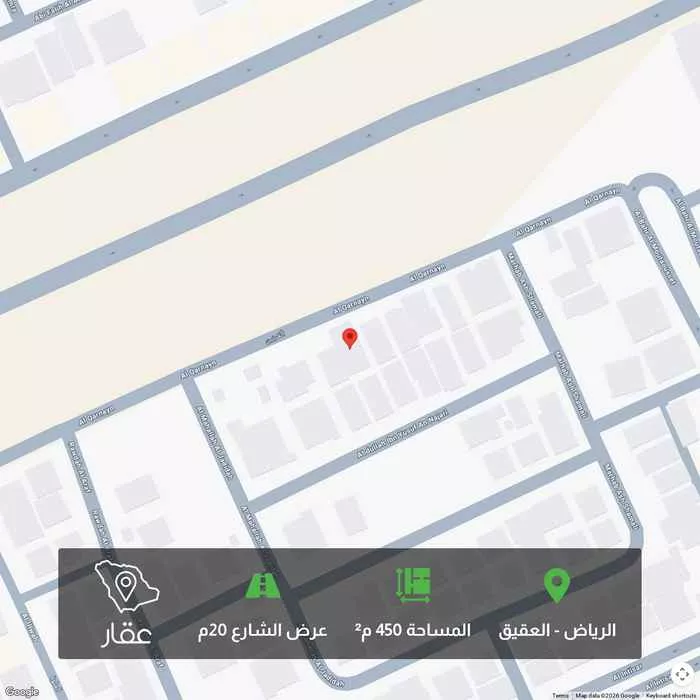450 م² أرض في العقيق، الرياض معروضة بسعر ٦٬٧٥٠٬٠٠٠ ريال، أعلى بنسبة 42% من متوسط سعر الحي البالغ ٤٬٧٥٠٬٠٠٠ ريال. بناءً على 43 عقار مشابه.