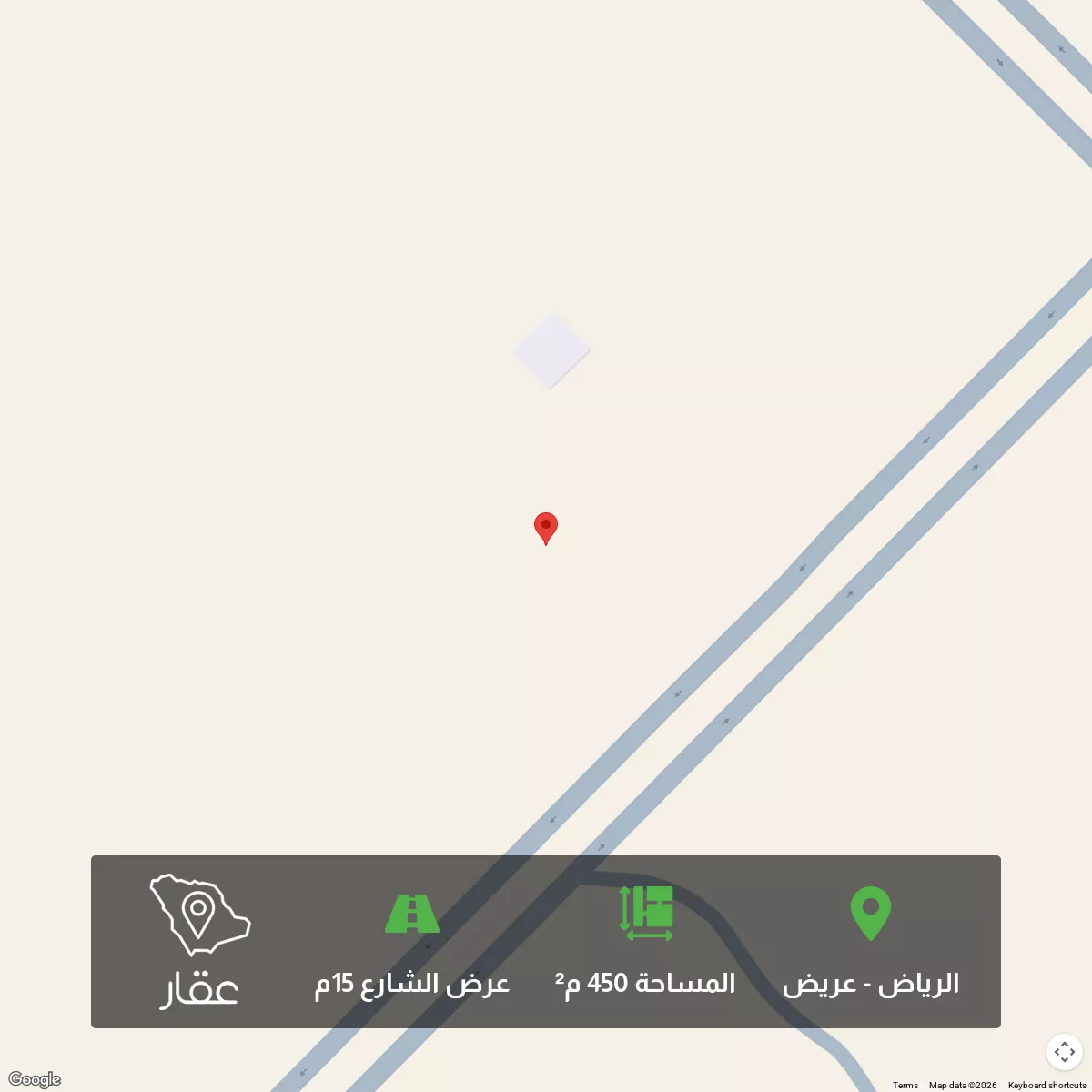 450 م² أرض في عريض، الرياض معروضة بسعر ٤٥٠٬٠٠٠ ريال، أعلى بنسبة 13% من متوسط سعر الحي البالغ ٣٩٩٬٦٠٠ ريال. بناءً على 653 عقار مشابه.