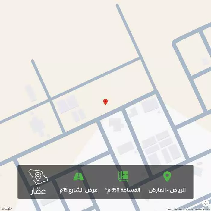 350 م² أرض في العارض، الرياض معروضة بسعر ١٬٩٩٥٬٠٠٠ ريال، أقل بنسبة 39% من متوسط سعر الحي البالغ ٣٬٢٤٥٬٨٢٤ ريال. بناءً على 361 عقار مشابه.